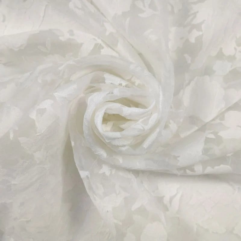 This fabric goes by several names. You might see it called “devoré chiffon” (from the French word meaning “to devour”), “burnout fabric,” or “etched chiffon.” All these terms refer to the same gorgeous textile that combines the flowing drape of regular chiffon with eye-catching patterns that look almost like lace but are created through an entirely different method.