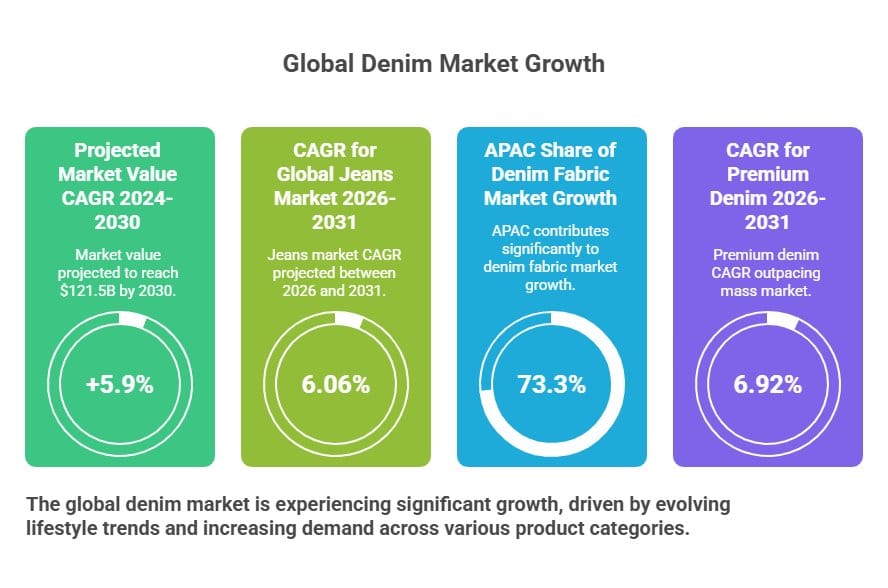 The denim market is in a genuine growth cycle. That growth is being driven by casual lifestyle trends, the return of denim to semi-formal settings, a resurgence of premium denim demand, and the broadening of what denim products include beyond traditional jeans.