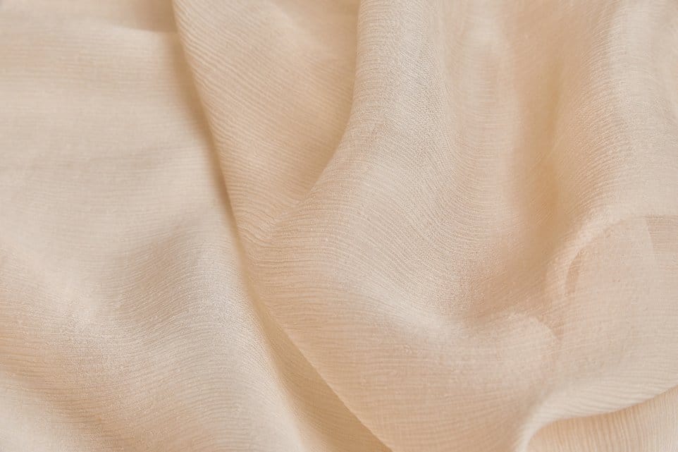 Similar to polyester but slightly different in properties. Nylon crinkle chiffon has good strength and elasticity. It’s popular for scarves and accessories because it handles wear well.