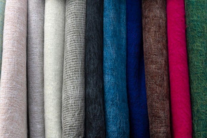 | Mohair | Fluffy, lustrous, silky sheen | Fashion knitwear, throws | $$$ |